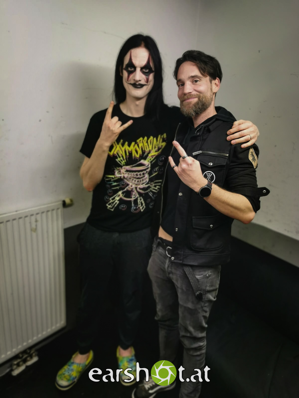 Das Vocal-WarmUp startet ungefähr eine Stunde vor dem Auftritt. Aber ich höre auch immer ein paar Lieder bevor ich auf die Bühne gehe. Und wir versuchen das immer thematisch passend auszuwählen. Heute hören wir wahrscheinlich FALCO zum Beispiel. (alle lachen)